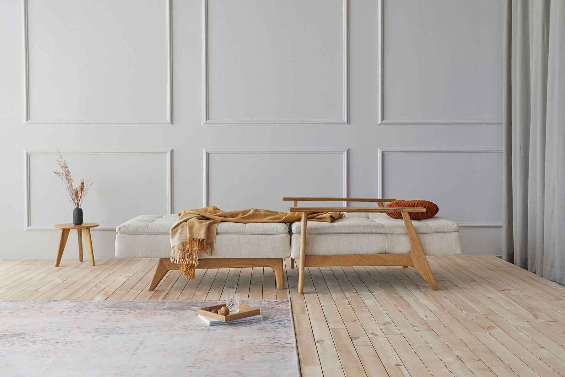 DUBLEXO stol EIK massivt egetræ natur lakeret / madras med posefjeder.