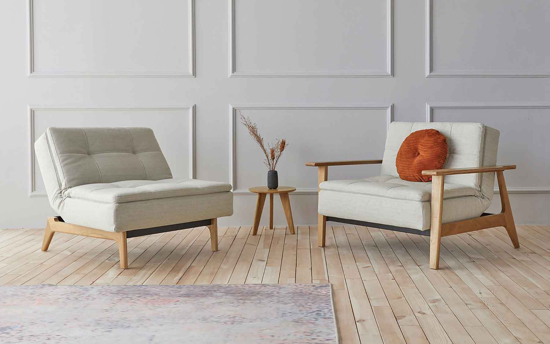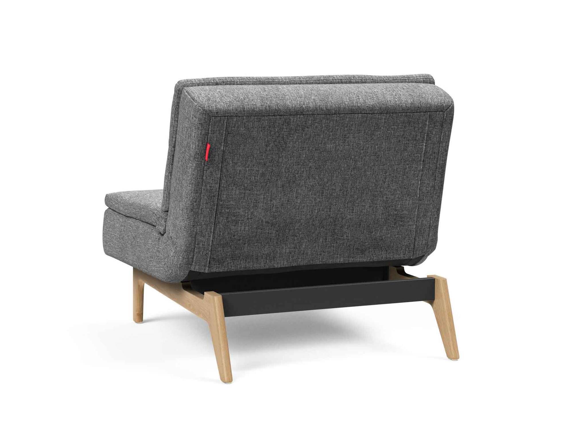 DUBLEXO stol stilfuld lænestol med behagelig Splitback funktion. Ben i natur lakeret egetræ.
