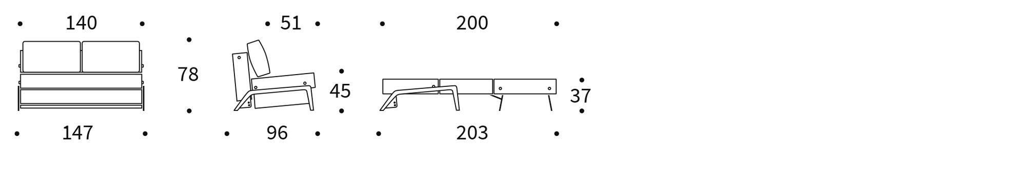 Sofaen forvandles nemt til en seng med et enkelt træk i den skjulte strop mellem ryghynderne. Benene folder automatisk ud, og du får en komfortabel dobbeltseng på 140 x 200 cm. Under sædet er der praktisk opbevaringsplads til dyner og puder.