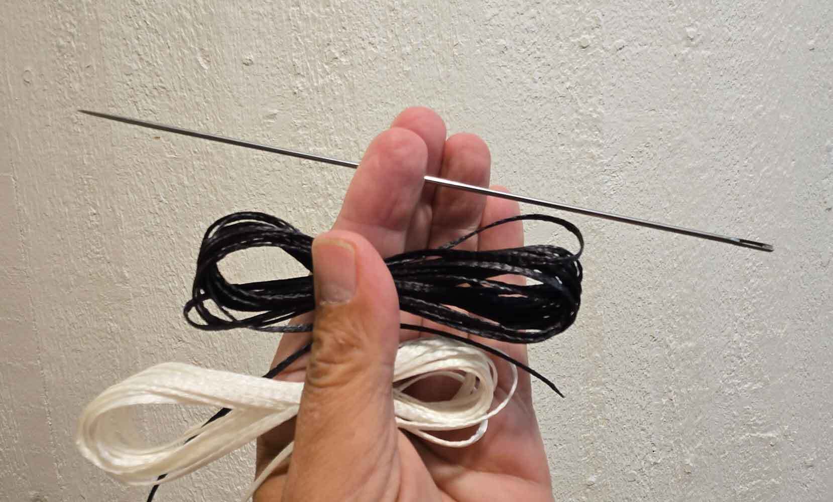 En lang nål og nylon tråd, til at lave "Gennem bindinger" på Futonmadrasserne igen.